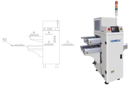 1.Perangkat ini dapat buffer papan NG dan OK dari mesin inspeksi AOI atau SPI. papan OK akan mengalir ke program berikutnya,dan papan NG akan mengalir ke lapisan atas mesin dan mengirimkannya ke mesin untuk konfirmasi manual.